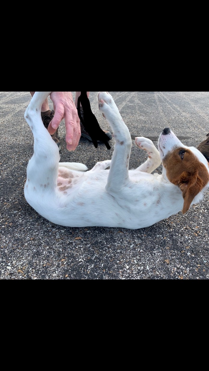 Most of the time, when you are in a public place and you approach a dog who does not know you and it rolls over and shows its belly the dog is NOT saying “rub my belly!” Dogs will roll over to signal appeasement or to create distance between themselves and a human! We call thats “tap out!” I know people have good intentions-and our instinct is to pet the dog on his tummy when he rolls over thinking he’s signaling “please move closer,” he’s actually signaling “please move away/or I’m no threat!” Not at all a pleasant/comfortable situation to be in. When I find myself at a restaurant, bar, or other places that are almost always too much for a dog to handle I without fail see a dog roll on its back and everyone thinks it’s adorable and goes to rub the belly. Just walk away, the dog is saying “you are a threat and I’m scared.”